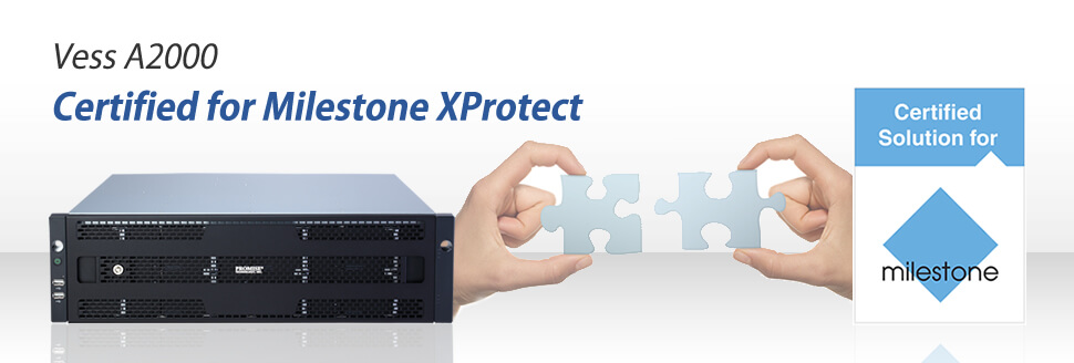 Milestone有著嚴謹及繁複的認證流程,以確保合作夥伴的產品可與XProtect®軟體達到最佳的優化及相容性。Vess A2000能夠通過Milestone解決方案認證,證明兩者可以完整相容並提供穩定且不間斷的監控錄影品質,更代表客戶可放心部署Vess A2000 系列與XProtect 監控軟體,滿足不同規格的專案,從少量監控攝影機的小型專案到機場到城市監控等大規模部署的安全需要,Vess A2000皆可提供最佳化的效能。